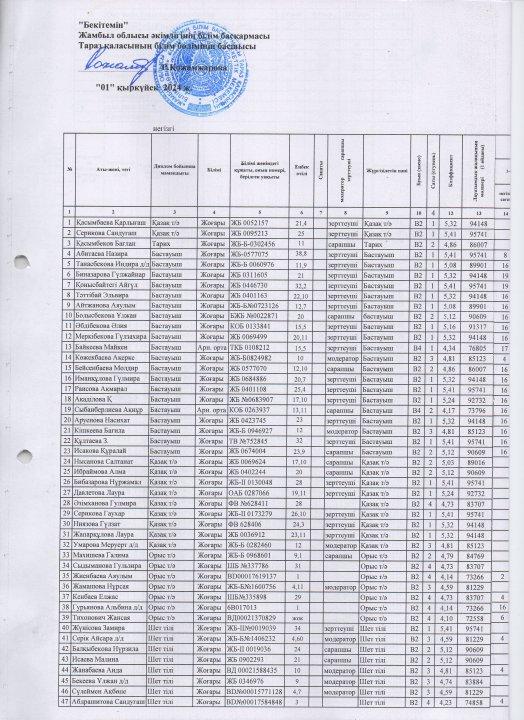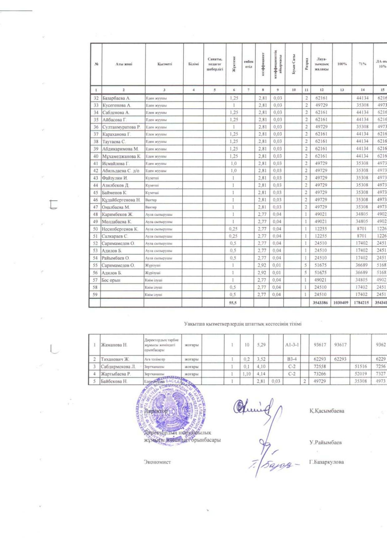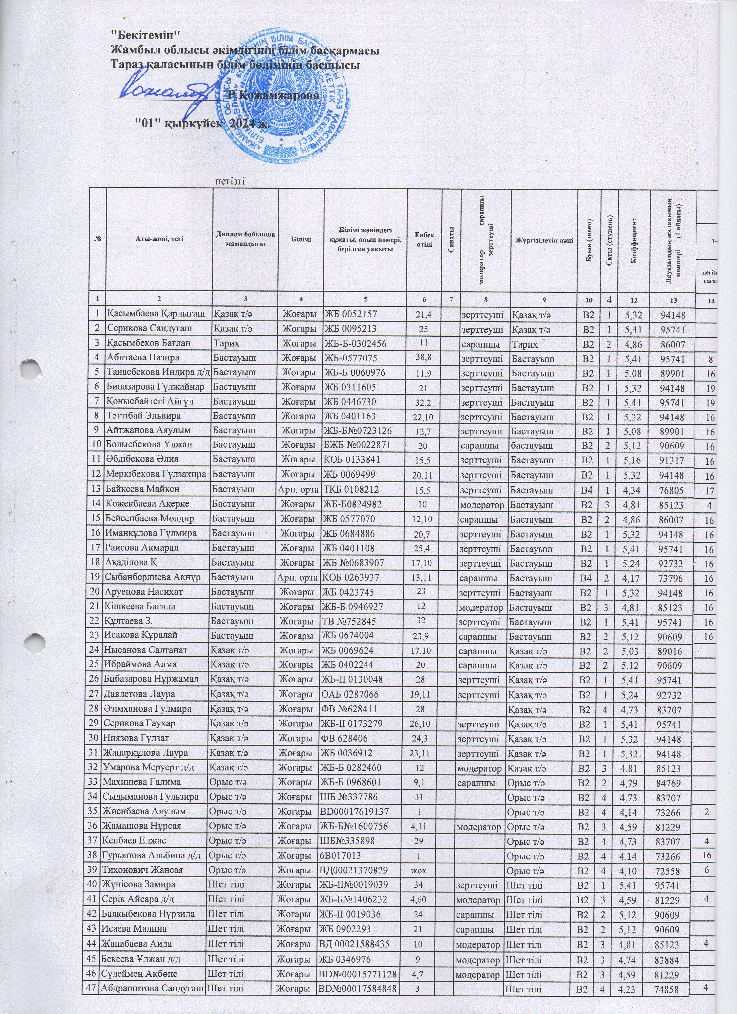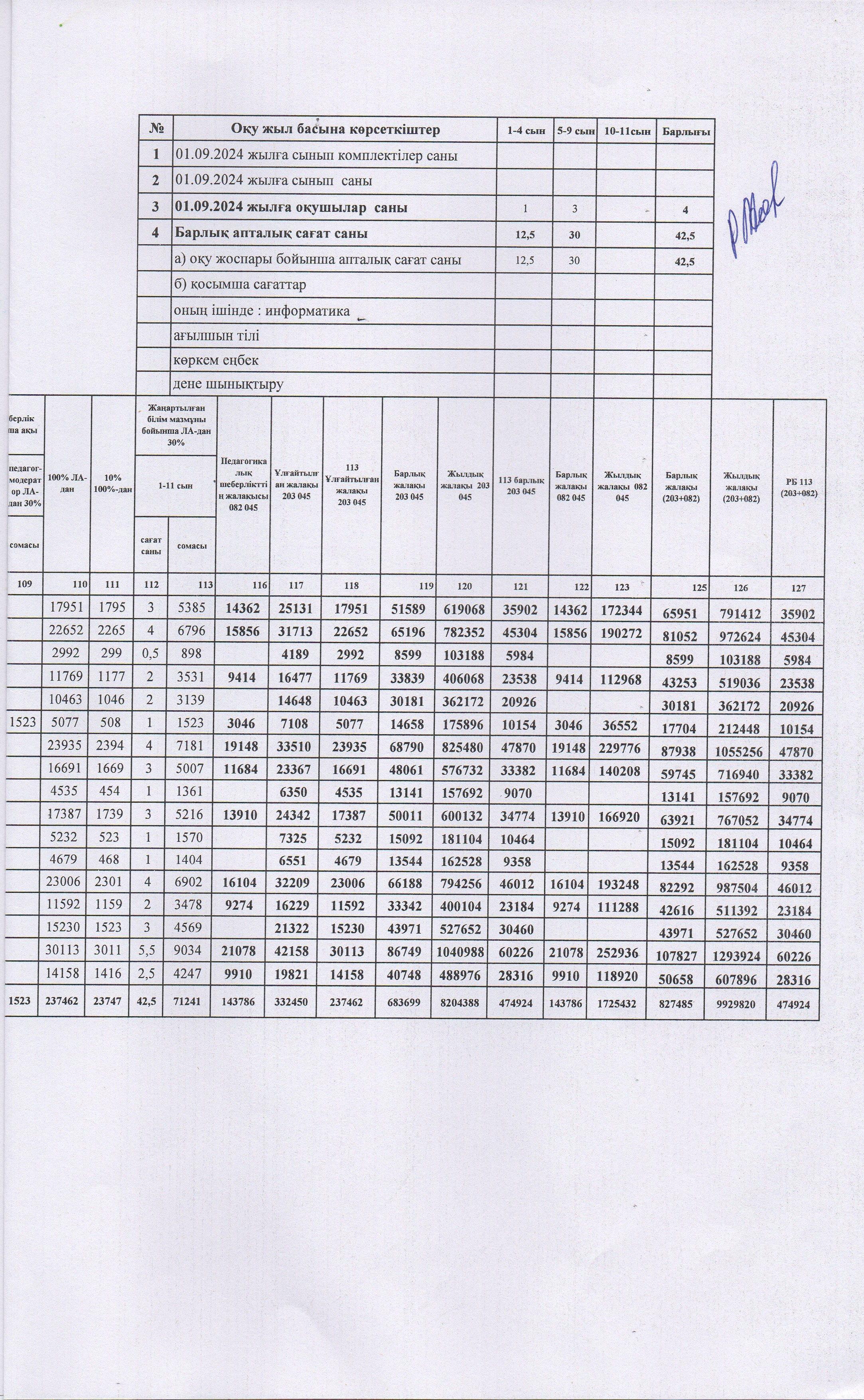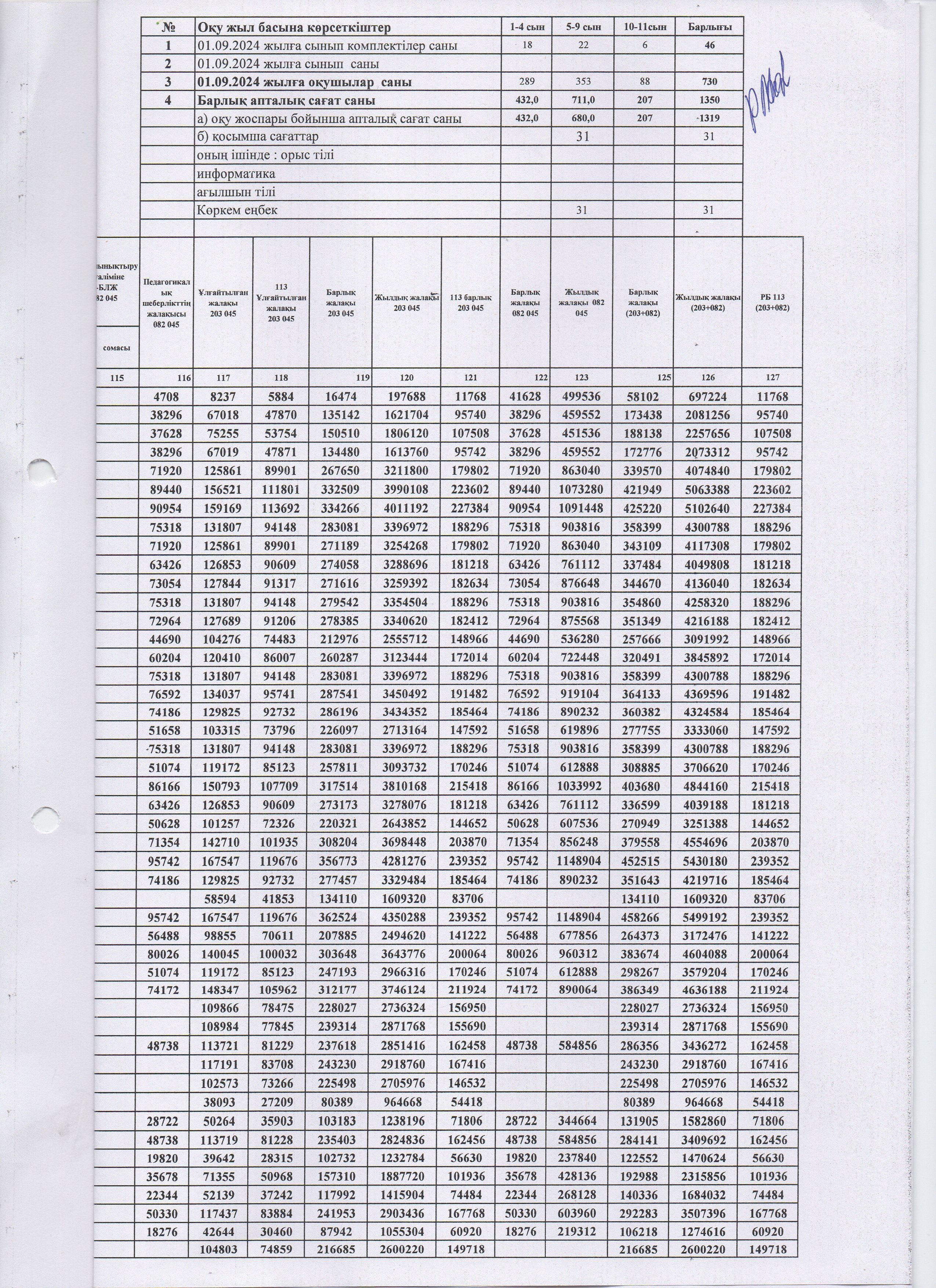 » » ТАРИФИКАЦИЯ, ШТАТТЫҚ КЕСТЕ 2024-2025 ҚЫРКҮЙЕК