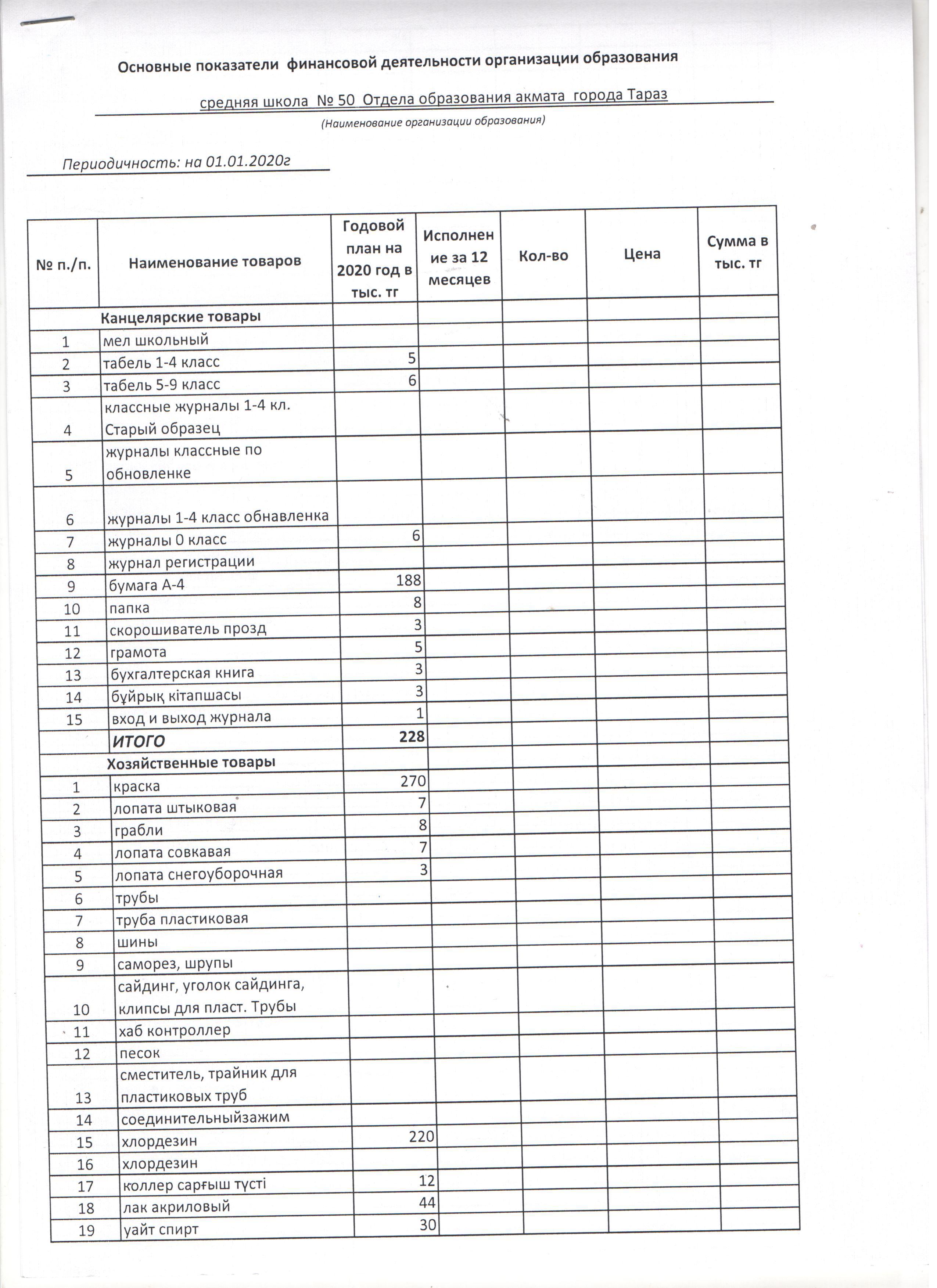 Основные показатели финансовой деятельности организации образования » СШ №50
