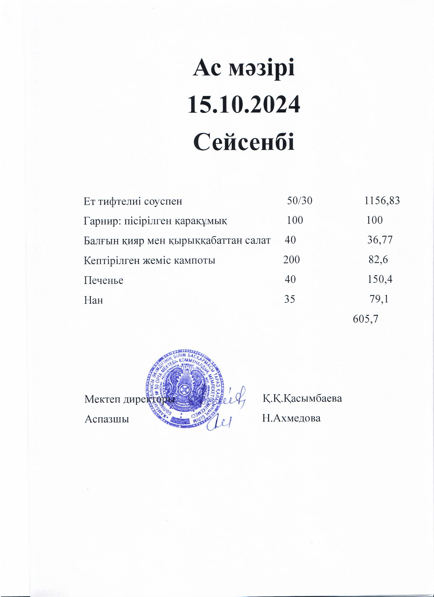 15 ноябрь 2024 Ас мәзірі 15.11.2024