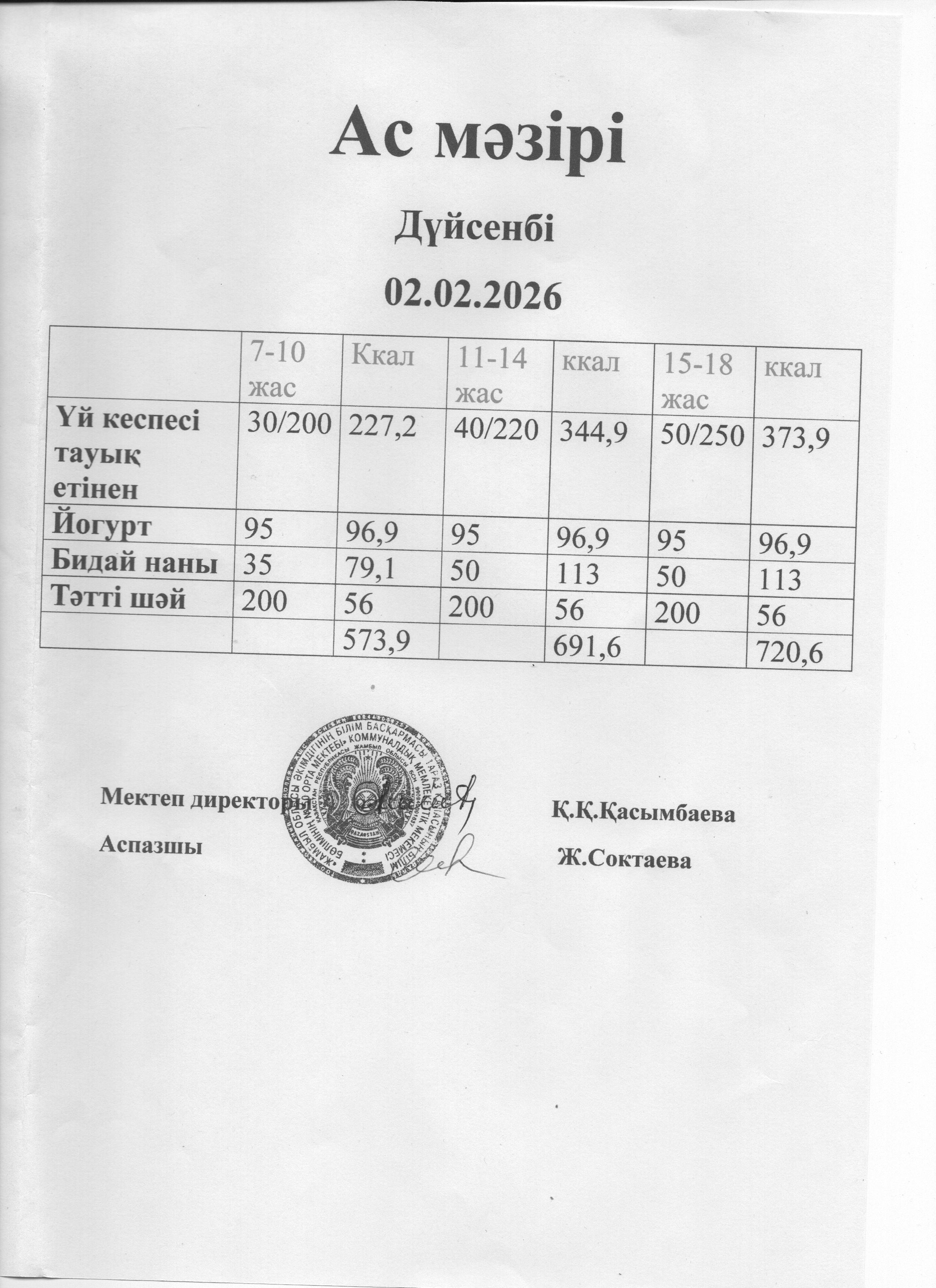 02 сентябрь 2024 ас мәзірі