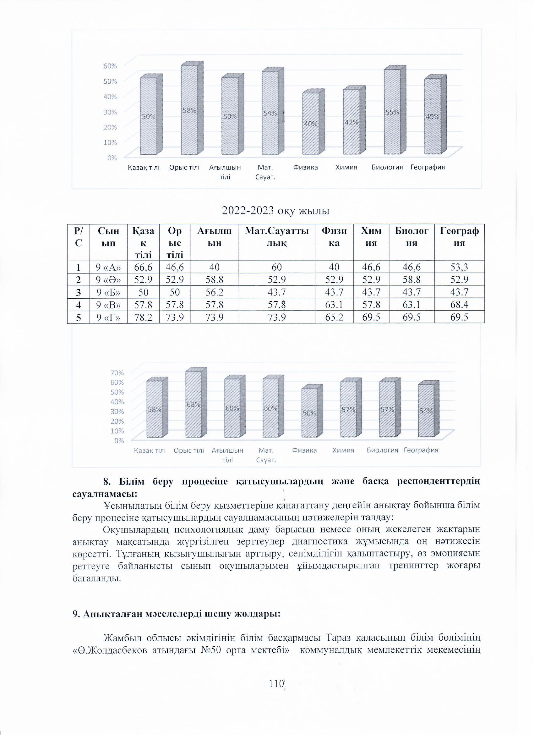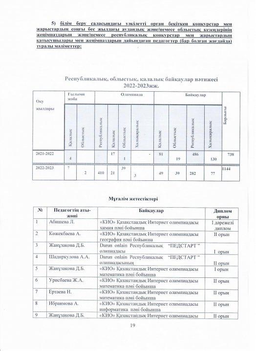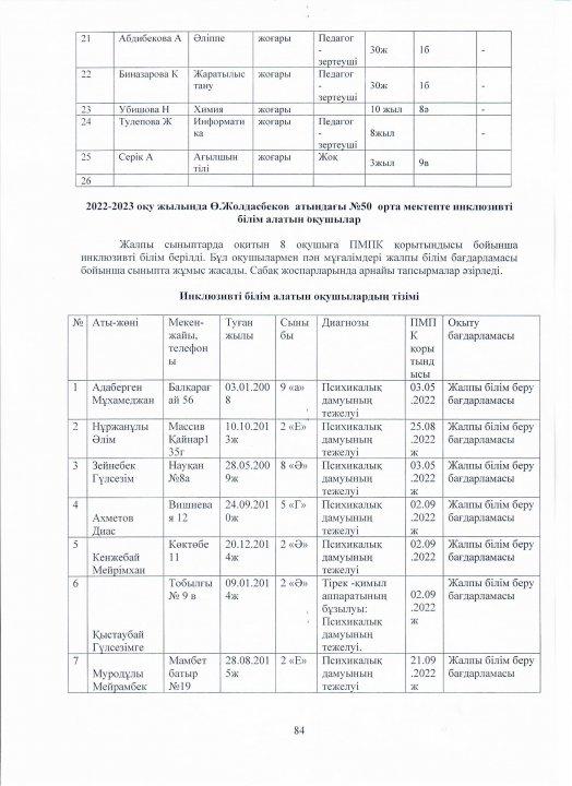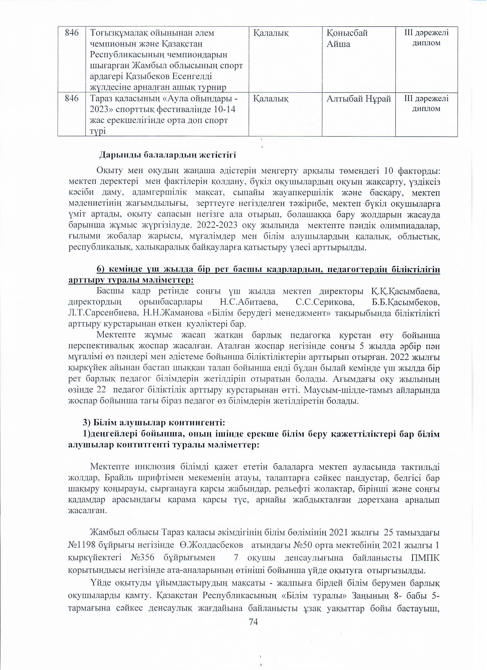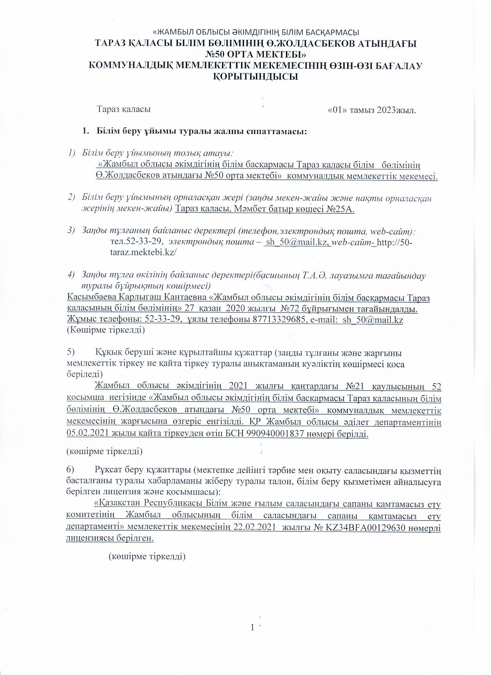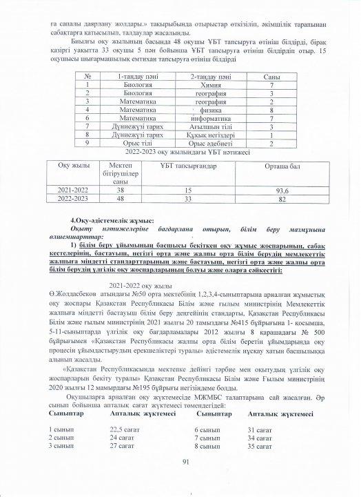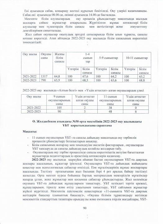04 август 2023 0 1 2 3 4 5 Ө.Жолдасбеков атындағы №50 орта мектебінің 2022-2023 оқу жылының өзін-өзі бағалау жұмысының қорытындысы