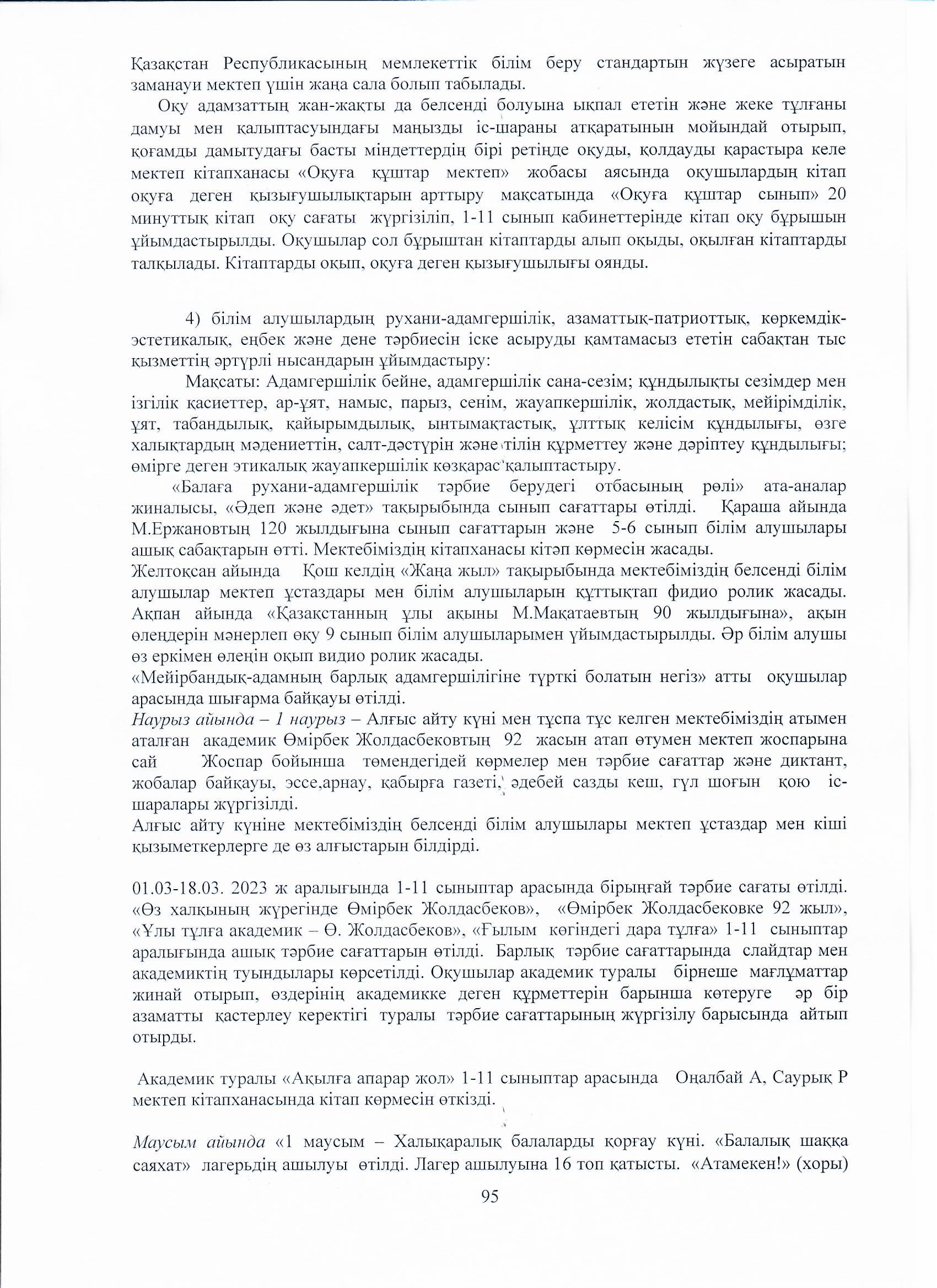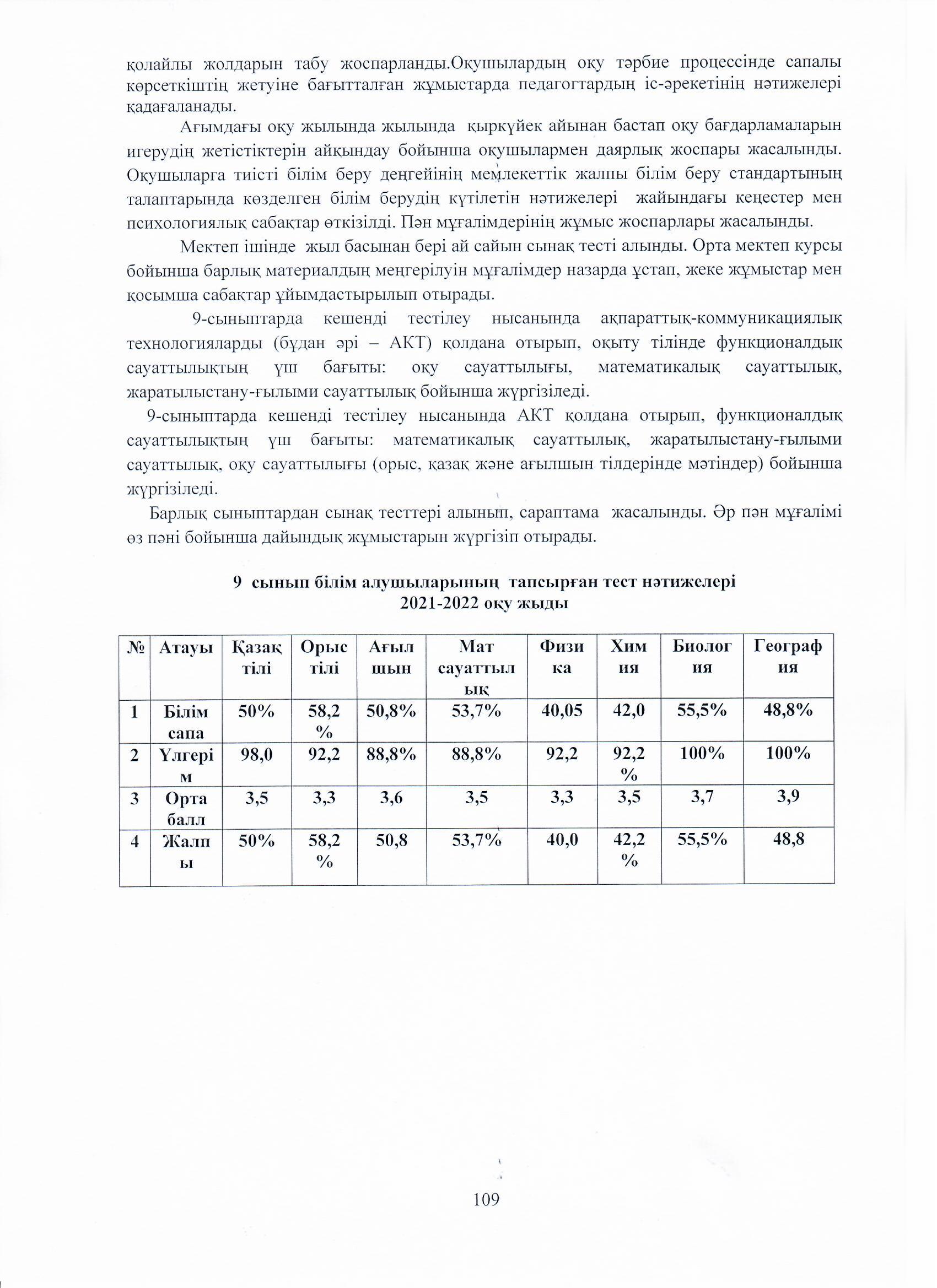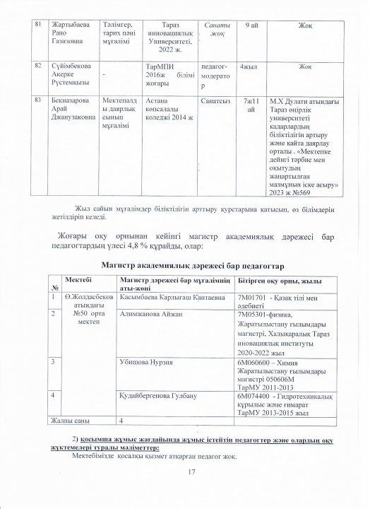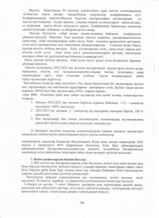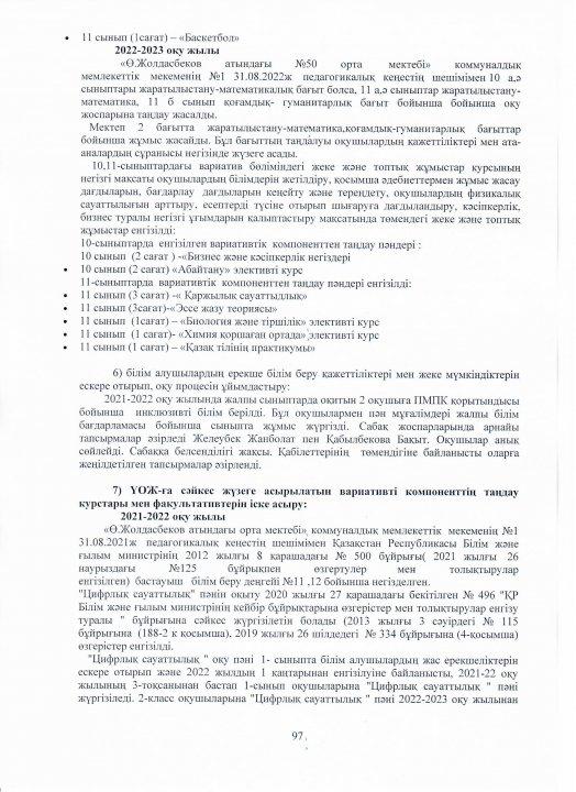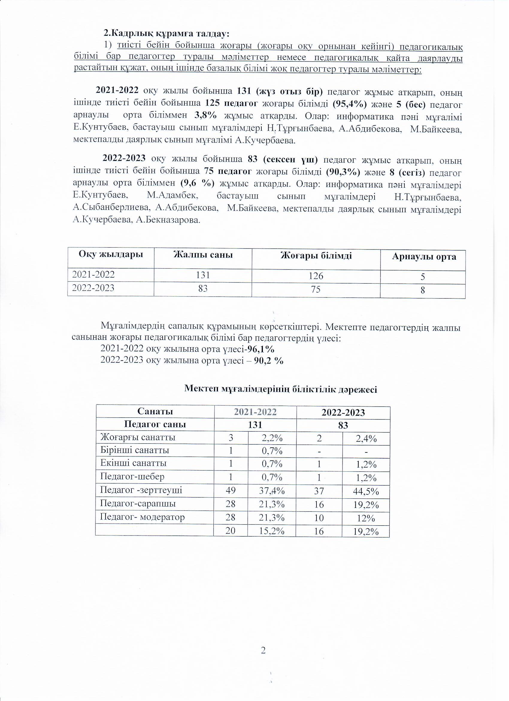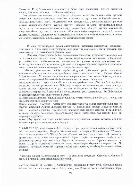 04 август 2023 0 1 2 3 4 5 Ө.Жолдасбеков атындағы №50 орта мектебінің 2022-2023 оқу жылының өзін-өзі бағалау жұмысының қорытындысы