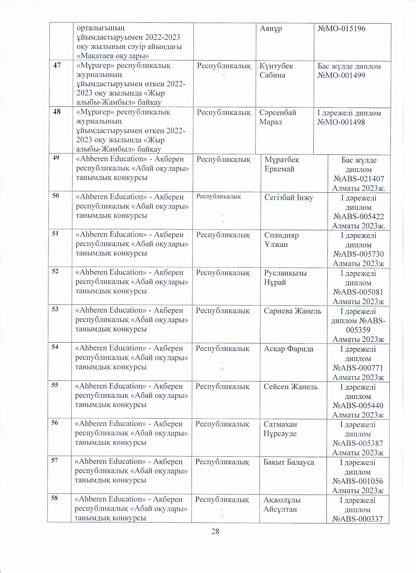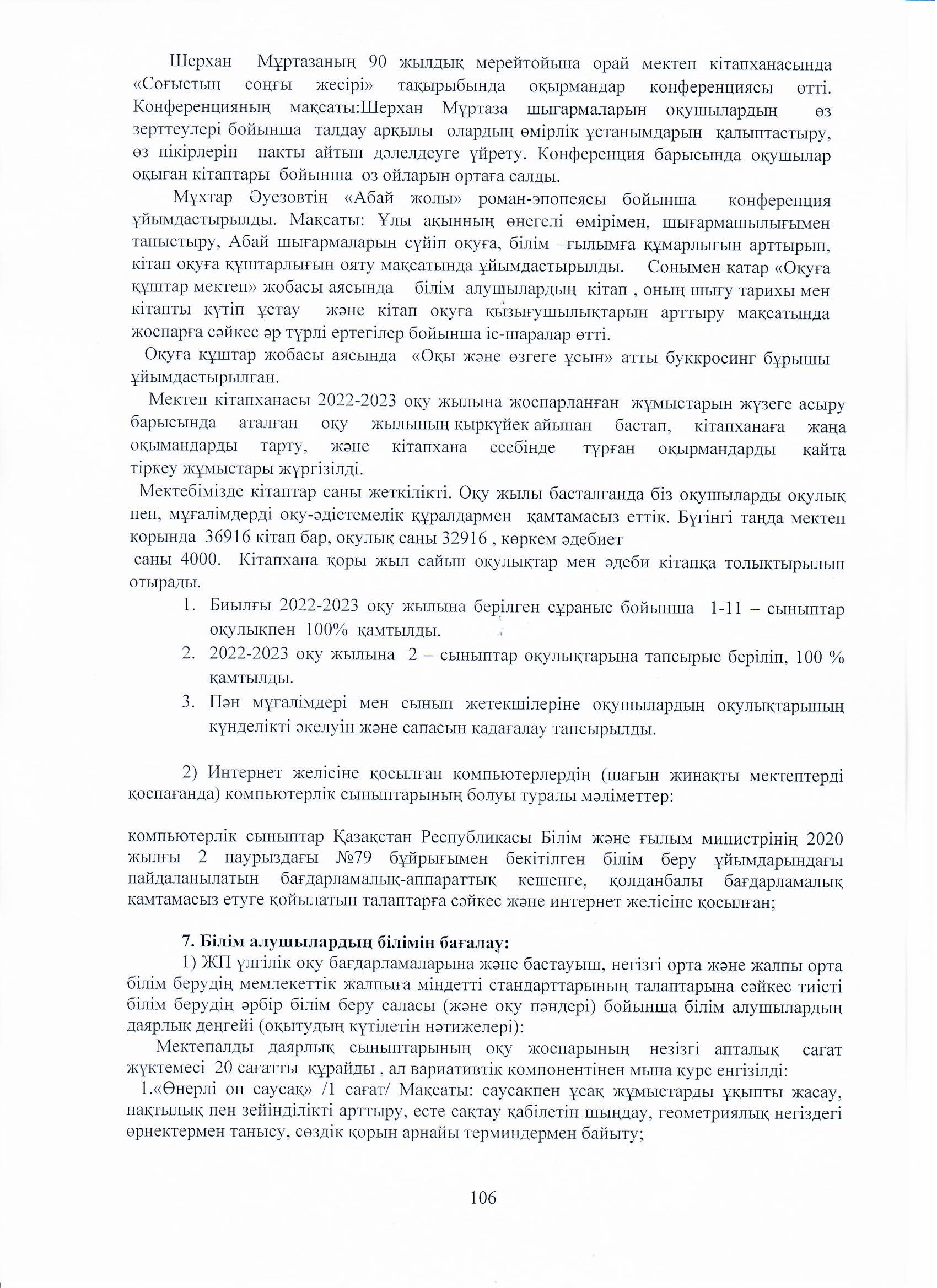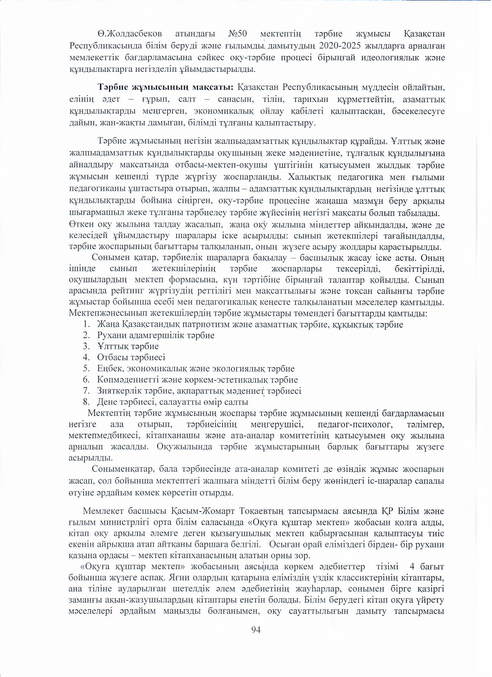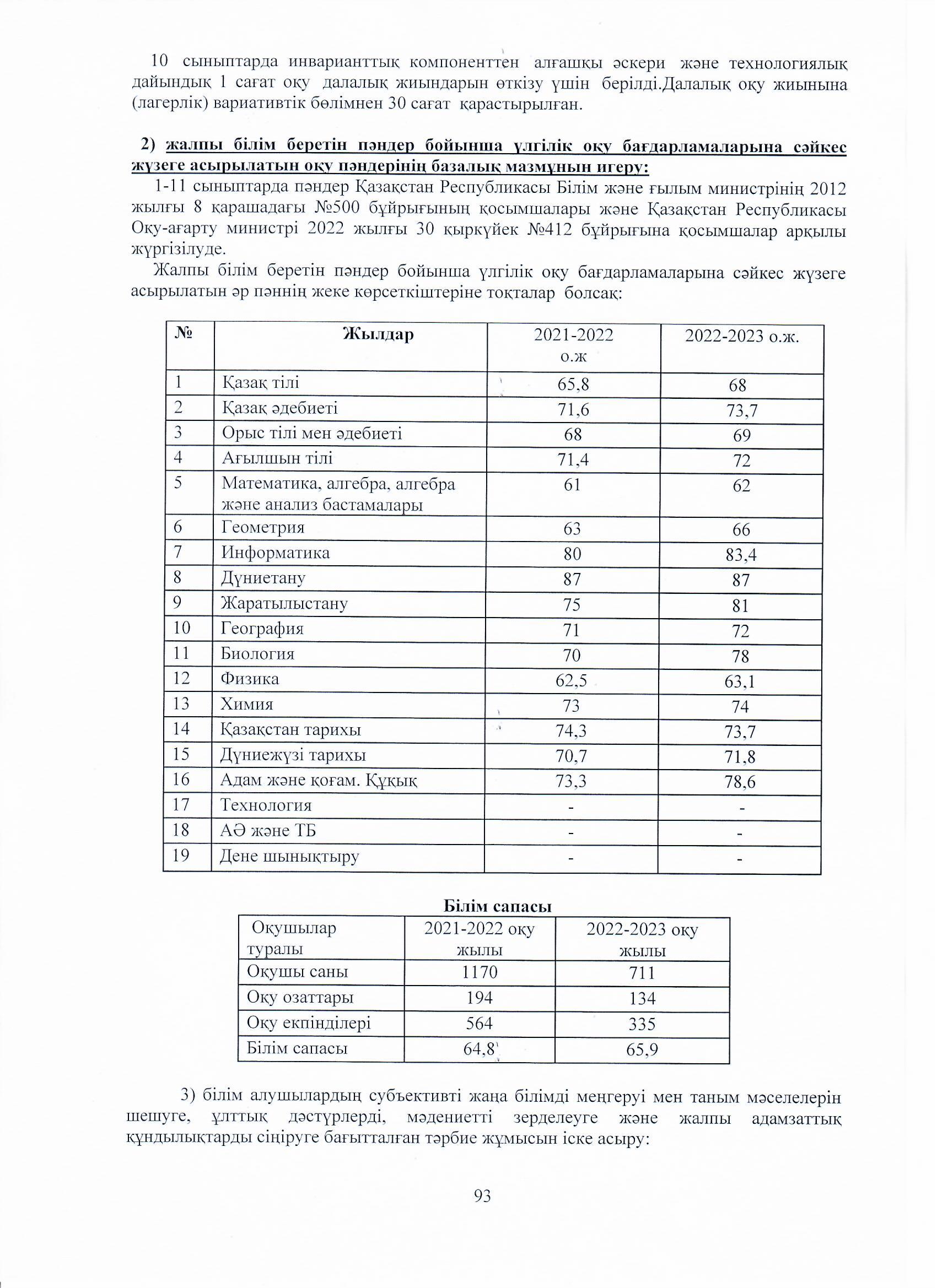 04 август 2023 0 1 2 3 4 5 Ө.Жолдасбеков атындағы №50 орта мектебінің 2022-2023 оқу жылының өзін-өзі бағалау жұмысының қорытындысы