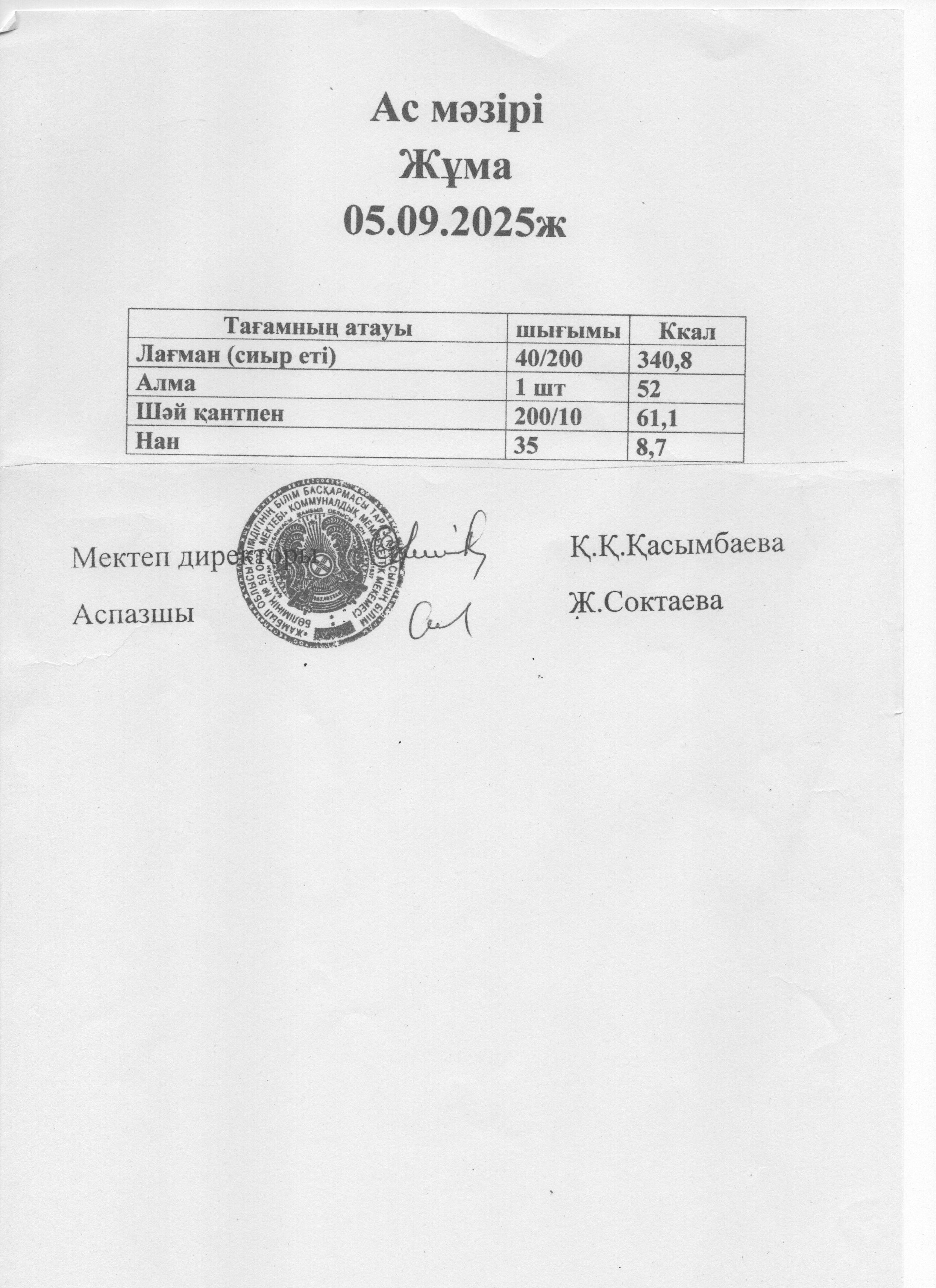 Ас мәзірі 05.09.2025